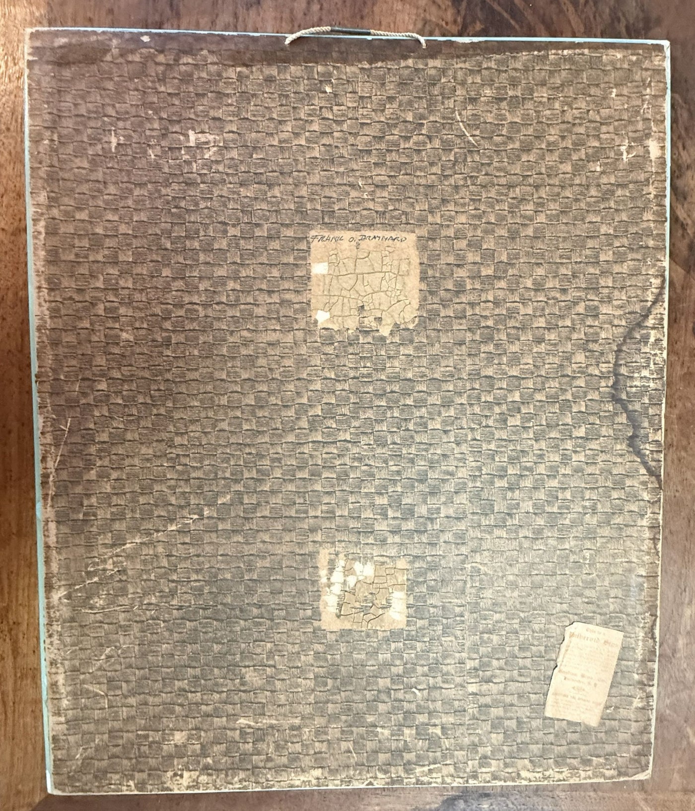 "Say it with flowers" is the simple tag line beneath an illustration of a bellhop walking up a Cunard gangway with a huge arrangement of red roses. The card on the bouquet is marked S.S. AQUITANIA. The 14" by 17" sign was distributed to florists in the 1930s and is mounted on cardboard with a plasticized coating on front. On back is a string for hanging.