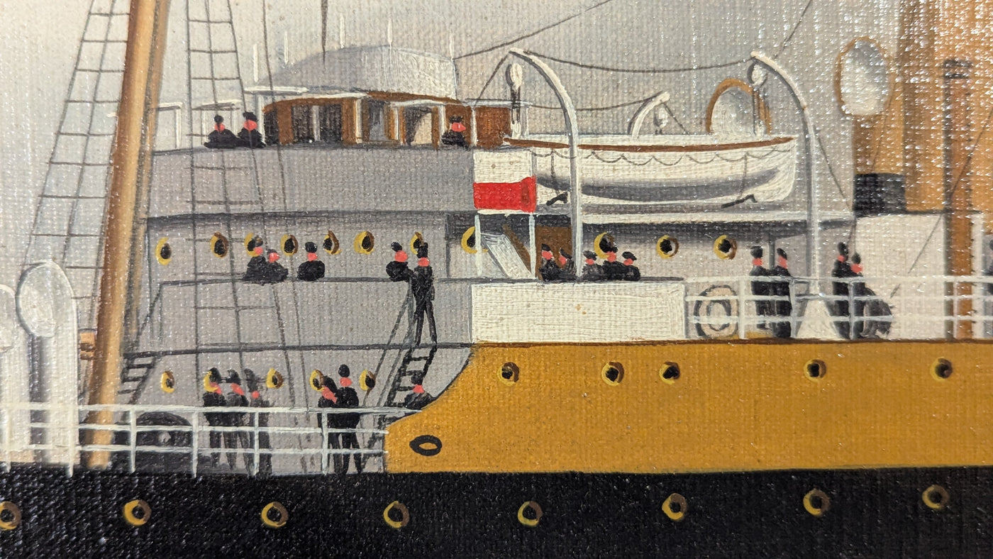 {"id":10161703321881,"title":"MONTEZUMA: 1899 - Original oil painting","handle":"montezuma-1899-original-oil-painting","description":"\u003cp\u003eCanadian Pacific - An original painting of the S.S. MONTEZUMA by Antwerp maritime artist Adrianus Johannes Jansen (1864-1943).\u003c\/p\u003e\n\u003cp\u003eThe portrait shows the MONTEZUMA at sea with passengers and crew on deck enjoying the air. The MONTEZUMA first sailed for Elder Dempster in 1899 as a freighter. Canadian Pacific took her over in 1903 and converted the ship into an emigrant hauler with a capacity of 500. In 1914 the British admiralty requisitioned the MONTEZUMA and converted her into an oiler. A U-boat torpedo ended her days in 1917.\u003c\/p\u003e\n\u003cp\u003eJansen would have painted this portrait during her Canadian Pacific era. He was known as a \"pierhead\" painter. Like Antonio Jacobson in New York, Jansen prowled the waterfront looking for work among ship owners, captains, and crew.\u003c\/p\u003e\n\u003cp\u003eThe elegant gilded frame measures 26\" by 38\" and is of unknown vintage. Some of the plaster trim work along the bottom edge is chipped.\u003c\/p\u003e\n\u003cp\u003eExcellent condition.\u003c\/p\u003e","published_at":"2025-10-14T14:34:29-04:00","created_at":"2025-10-14T14:34:26-04:00","vendor":"RL","type":"- Artwork","tags":["- Artwork","A to Z: 100s of Ships","Canadian Pacific"],"price":199500,"price_min":199500,"price_max":199500,"available":false,"price_varies":false,"compare_at_price":null,"compare_at_price_min":0,"compare_at_price_max":0,"compare_at_price_varies":false,"variants":[{"id":51525016060185,"title":"Default Title","option1":"Default Title","option2":null,"option3":null,"sku":null,"requires_shipping":true,"taxable":true,"featured_image":null,"available":false,"name":"MONTEZUMA: 1899 - Original oil painting","public_title":null,"options":["Default Title"],"price":199500,"weight":6804,"compare_at_price":null,"inventory_quantity":0,"inventory_management":"shopify","inventory_policy":"deny","barcode":"","requires_selling_plan":false,"selling_plan_allocations":[]}],"images":["\/\/nautiques.net\/cdn\/shop\/files\/10877a.jpg?v=1760466696","\/\/nautiques.net\/cdn\/shop\/files\/10877a-1.jpg?v=1760466696","\/\/nautiques.net\/cdn\/shop\/files\/10877a-2.jpg?v=1760466696","\/\/nautiques.net\/cdn\/shop\/files\/10877a-3.jpg?v=1760466696","\/\/nautiques.net\/cdn\/shop\/files\/10877a-4.jpg?v=1760466696","\/\/nautiques.net\/cdn\/shop\/files\/10877a-5.jpg?v=1760466696","\/\/nautiques.net\/cdn\/shop\/files\/10877a-6.jpg?v=1760466696","\/\/nautiques.net\/cdn\/shop\/files\/10877a-7.jpg?v=1760466695","\/\/nautiques.net\/cdn\/shop\/files\/10877a-8.jpg?v=1760466696","\/\/nautiques.net\/cdn\/shop\/files\/10877a-9.jpg?v=1760466695","\/\/nautiques.net\/cdn\/shop\/files\/10877a-10.jpg?v=1760466696"],"featured_image":"\/\/nautiques.net\/cdn\/shop\/files\/10877a.jpg?v=1760466696","options":["Title"],"media":[{"alt":null,"id":42054338380057,"position":1,"preview_image":{"aspect_ratio":1.462,"height":864,"width":1263,"src":"\/\/nautiques.net\/cdn\/shop\/files\/10877a.jpg?v=1760466696"},"aspect_ratio":1.462,"height":864,"media_type":"image","src":"\/\/nautiques.net\/cdn\/shop\/files\/10877a.jpg?v=1760466696","width":1263},{"alt":null,"id":42054338412825,"position":2,"preview_image":{"aspect_ratio":1.778,"height":1512,"width":2688,"src":"\/\/nautiques.net\/cdn\/shop\/files\/10877a-1.jpg?v=1760466696"},"aspect_ratio":1.778,"height":1512,"media_type":"image","src":"\/\/nautiques.net\/cdn\/shop\/files\/10877a-1.jpg?v=1760466696","width":2688},{"alt":null,"id":42054338445593,"position":3,"preview_image":{"aspect_ratio":1.778,"height":1512,"width":2688,"src":"\/\/nautiques.net\/cdn\/shop\/files\/10877a-2.jpg?v=1760466696"},"aspect_ratio":1.778,"height":1512,"media_type":"image","src":"\/\/nautiques.net\/cdn\/shop\/files\/10877a-2.jpg?v=1760466696","width":2688},{"alt":null,"id":42054338478361,"position":4,"preview_image":{"aspect_ratio":1.778,"height":1512,"width":2688,"src":"\/\/nautiques.net\/cdn\/shop\/files\/10877a-3.jpg?v=1760466696"},"aspect_ratio":1.778,"height":1512,"media_type":"image","src":"\/\/nautiques.net\/cdn\/shop\/files\/10877a-3.jpg?v=1760466696","width":2688},{"alt":null,"id":42054338511129,"position":5,"preview_image":{"aspect_ratio":1.778,"height":1512,"width":2688,"src":"\/\/nautiques.net\/cdn\/shop\/files\/10877a-4.jpg?v=1760466696"},"aspect_ratio":1.778,"height":1512,"media_type":"image","src":"\/\/nautiques.net\/cdn\/shop\/files\/10877a-4.jpg?v=1760466696","width":2688},{"alt":null,"id":42054338543897,"position":6,"preview_image":{"aspect_ratio":1.778,"height":1512,"width":2688,"src":"\/\/nautiques.net\/cdn\/shop\/files\/10877a-5.jpg?v=1760466696"},"aspect_ratio":1.778,"height":1512,"media_type":"image","src":"\/\/nautiques.net\/cdn\/shop\/files\/10877a-5.jpg?v=1760466696","width":2688},{"alt":null,"id":42054338576665,"position":7,"preview_image":{"aspect_ratio":1.778,"height":1512,"width":2688,"src":"\/\/nautiques.net\/cdn\/shop\/files\/10877a-6.jpg?v=1760466696"},"aspect_ratio":1.778,"height":1512,"media_type":"image","src":"\/\/nautiques.net\/cdn\/shop\/files\/10877a-6.jpg?v=1760466696","width":2688},{"alt":null,"id":42054338609433,"position":8,"preview_image":{"aspect_ratio":1.073,"height":1084,"width":1163,"src":"\/\/nautiques.net\/cdn\/shop\/files\/10877a-7.jpg?v=1760466695"},"aspect_ratio":1.073,"height":1084,"media_type":"image","src":"\/\/nautiques.net\/cdn\/shop\/files\/10877a-7.jpg?v=1760466695","width":1163},{"alt":null,"id":42054338642201,"position":9,"preview_image":{"aspect_ratio":1.778,"height":1512,"width":2688,"src":"\/\/nautiques.net\/cdn\/shop\/files\/10877a-8.jpg?v=1760466696"},"aspect_ratio":1.778,"height":1512,"media_type":"image","src":"\/\/nautiques.net\/cdn\/shop\/files\/10877a-8.jpg?v=1760466696","width":2688},{"alt":null,"id":42054338674969,"position":10,"preview_image":{"aspect_ratio":2.122,"height":898,"width":1906,"src":"\/\/nautiques.net\/cdn\/shop\/files\/10877a-9.jpg?v=1760