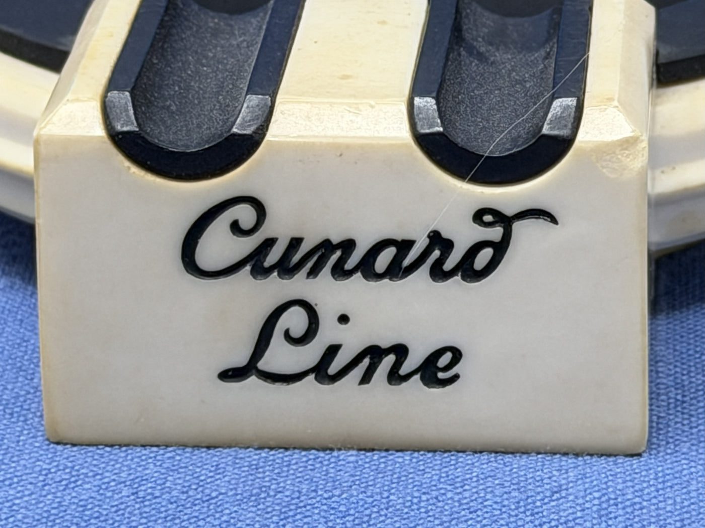Cunard Line: The iconic Bakelite "toilet seat" ashtray as used on the QUEEN MARY beginning in 1936.  This one has the line name, minus White Star, indicating it is from the 1950s.