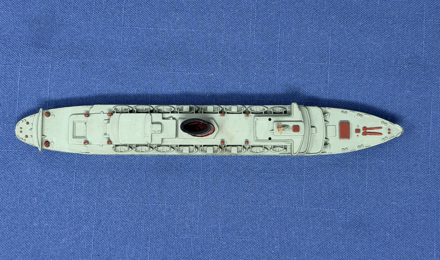 The 7" model is painted in the appropriate "cruising" green, although only in one shade as opposed to four on the actual CARONIA. The mast appears to be a replacement.