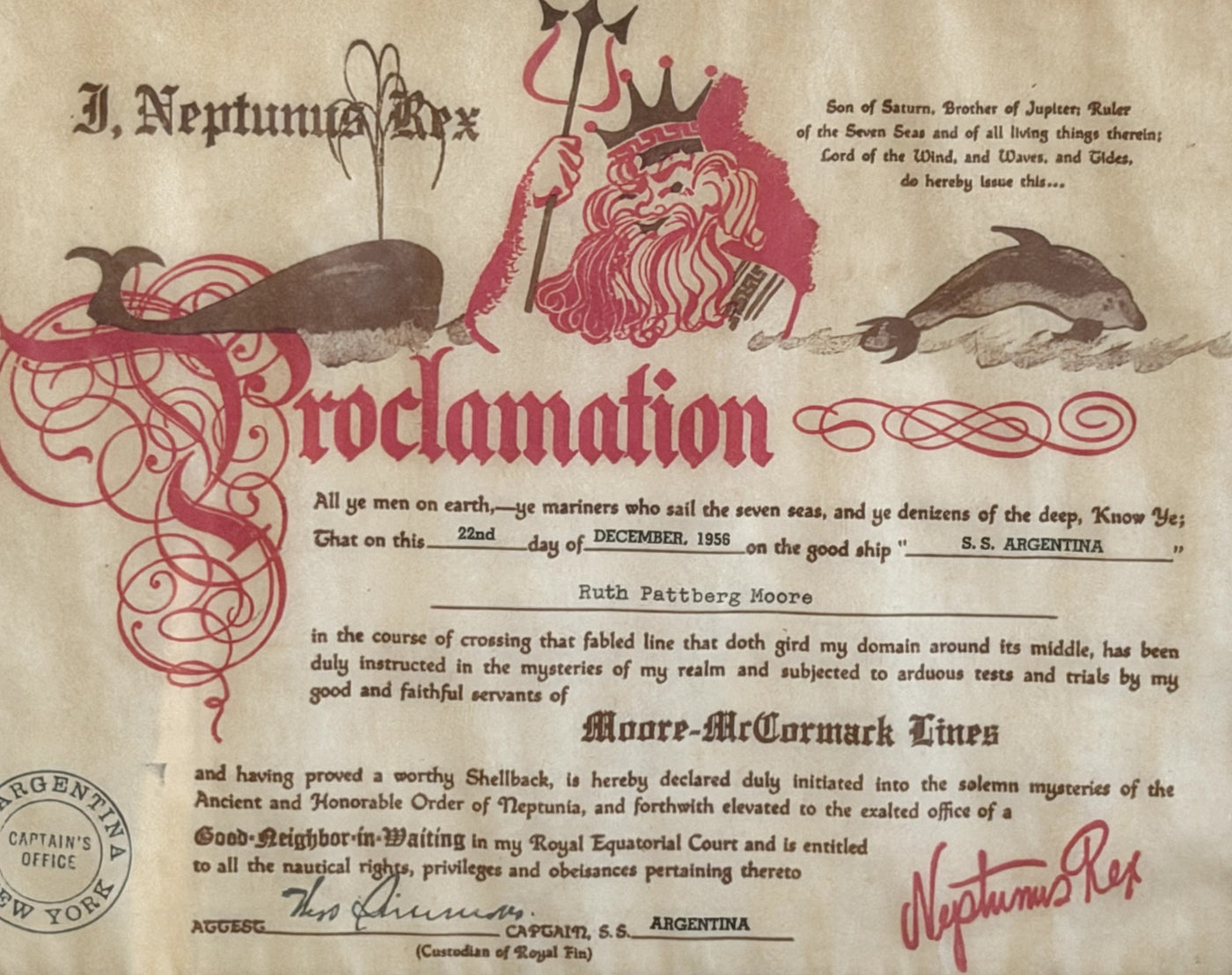 {"id":10324110246169,"title":"ARGENTINA: 1929 - Framed fancy crossing-the-line certificate from 1956","handle":"argentina-1929-framed-fancy-crossing-the-line-certificate-from-1956","description":"\u003cp\u003eMoore McCormack Line - A fancy crossing-the-line certificate for the ARGENTINA dated 1956.\u003c\/p\u003e\n\u003cp\u003eThe 12.5\" by 15.5\" certificate comes in the original wood frame and gold-trimmed matting. \u003c\/p\u003e\n\u003cp\u003eRuth Pattberg Moore was the lucky recipient, crossing the equator on December 22, 1956. The certificate was signed by the captain and, of course, Neptune.\u003c\/p\u003e\n\u003cp\u003eExcellent condition.\u003c\/p\u003e","published_at":"2026-04-12T12:07:09-04:00","created_at":"2026-04-12T12:07:08-04:00","vendor":"N","type":"- Artwork","tags":["- Artwork","A to Z: 100s of Ships","Moore McCormack Line"],"price":3500,"price_min":3500,"price_max":3500,"available":true,"price_varies":false,"compare_at_price":null,"compare_at_price_min":0,"compare_at_price_max":0,"compare_at_price_varies":false,"variants":[{"id":52223692374297,"title":"Default Title","option1":"Default Title","option2":null,"option3":null,"sku":"67a","requires_shipping":true,"taxable":true,"featured_image":null,"available":true,"name":"ARGENTINA: 1929 - Framed fancy crossing-the-line certificate from 1956","public_title":null,"options":["Default Title"],"price":3500,"weight":907,"compare_at_price":null,"inventory_quantity":1,"inventory_management":"shopify","inventory_policy":"deny","barcode":"","requires_selling_plan":false,"selling_plan_allocations":[],"quantity_rule":{"min":1,"max":null,"increment":1}}],"images":["\/\/nautiques.net\/cdn\/shop\/files\/67a.jpg?v=1776009951","\/\/nautiques.net\/cdn\/shop\/files\/67a-1.jpg?v=1776009953"],"featured_image":"\/\/nautiques.net\/cdn\/shop\/files\/67a.jpg?v=1776009951","options":["Title"],"media":[{"alt":null,"id":43423225741593,"position":1,"preview_image":{"aspect_ratio":1.244,"height":1935,"width":2407,"src":"\/\/nautiques.net\/cdn\/shop\/files\/67a.jpg?v=1776009951"},"aspect_ratio":1.244,"height":1935,"media_type":"image","src":"\/\/nautiques.net\/cdn\/shop\/files\/67a.jpg?v=1776009951","width":2407},{"alt":null,"id":43423225774361,"position":2,"preview_image":{"aspect_ratio":1.263,"height":2843,"width":3592,"src":"\/\/nautiques.net\/cdn\/shop\/files\/67a-1.jpg?v=1776009953"},"aspect_ratio":1.263,"height":2843,"media_type":"image","src":"\/\/nautiques.net\/cdn\/shop\/files\/67a-1.jpg?v=1776009953","width":3592}],"requires_selling_plan":false,"selling_plan_groups":[],"content":"\u003cp\u003eMoore McCormack Line - A fancy crossing-the-line certificate for the ARGENTINA dated 1956.\u003c\/p\u003e\n\u003cp\u003eThe 12.5\" by 15.5\" certificate comes in the original wood frame and gold-trimmed matting. \u003c\/p\u003e\n\u003cp\u003eRuth Pattberg Moore was the lucky recipient, crossing the equator on December 22, 1956. The certificate was signed by the captain and, of course, Neptune.\u003c\/p\u003e\n\u003cp\u003eExcellent condition.\u003c\/p\u003e"}