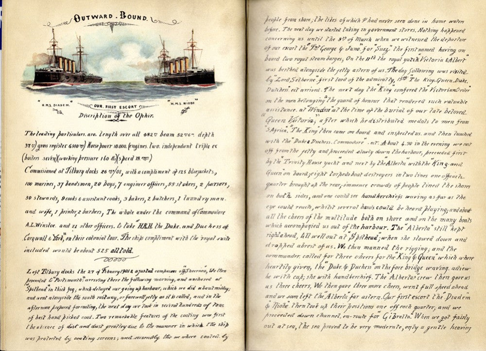 {"id":10300921315609,"title":"OPHIR: 1891 - \"The Royal Tour 1901, Or the Cruise of H.M.S. OPHIR\"","handle":"ophir-1891-the-royal-tour-1901-or-the-cruise-of-h-m-s-ophur","description":"\u003cp\u003eOrient Line: \"The Royal Tour 1901, Or the Cruise of H.M.S. OPHIR\" by Petty Officer Harry Price, published 1980, hardbound with dust jacket approx. 150 pages. \u003c\/p\u003e\n\u003cp\u003eThis book is a facsimile of a unique, handwritten, and beautifully illustrated account of the cruise of the HMS OPHIR in 1901 when the Duke and Duchess of York (later King George V and Queen Mary) toured the British Empire. The highly popular tour took 9 months. Petty Officer Price wrote and illustrated his journal during the voyage and that artistic account is what is printed here.\u003c\/p\u003e\n\u003cp\u003eVery good condition.\u003c\/p\u003e","published_at":"2026-03-17T14:41:01-04:00","created_at":"2026-03-17T14:41:00-04:00","vendor":"N","type":"- Books","tags":["- Books","A to Z: 100s of Ships","Orient Line","P\u0026O-Orient Lines"],"price":950,"price_min":950,"price_max":950,"available":true,"price_varies":false,"compare_at_price":null,"compare_at_price_min":0,"compare_at_price_max":0,"compare_at_price_varies":false,"variants":[{"id":52134992740633,"title":"Default Title","option1":"Default Title","option2":null,"option3":null,"sku":"10777","requires_shipping":true,"taxable":true,"featured_image":null,"available":true,"name":"OPHIR: 1891 - \"The Royal Tour 1901, Or the Cruise of H.M.S. OPHIR\"","public_title":null,"options":["Default Title"],"price":950,"weight":1361,"compare_at_price":null,"inventory_quantity":3,"inventory_management":"shopify","inventory_policy":"deny","barcode":"","requires_selling_plan":false,"selling_plan_allocations":[]}],"images":["\/\/nautiques.net\/cdn\/shop\/files\/10777.jpg?v=1773772787","\/\/nautiques.net\/cdn\/shop\/files\/10777-1.jpg?v=1773772788","\/\/nautiques.net\/cdn\/shop\/files\/10777-2.jpg?v=1773772787","\/\/nautiques.net\/cdn\/shop\/files\/10777-3.jpg?v=1773772787"],"featured_image":"\/\/nautiques.net\/cdn\/shop\/files\/10777.jpg?v=1773772787","options":["Title"],"media":[{"alt":null,"id":43209176187161,"position":1,"preview_image":{"aspect_ratio":0.704,"height":902,"width":635,"src":"\/\/nautiques.net\/cdn\/shop\/files\/10777.jpg?v=1773772787"},"aspect_ratio":0.704,"height":902,"media_type":"image","src":"\/\/nautiques.net\/cdn\/shop\/files\/10777.jpg?v=1773772787","width":635},{"alt":null,"id":43209176219929,"position":2,"preview_image":{"aspect_ratio":0.671,"height":946,"width":635,"src":"\/\/nautiques.net\/cdn\/shop\/files\/10777-1.jpg?v=1773772788"},"aspect_ratio":0.671,"height":946,"media_type":"image","src":"\/\/nautiques.net\/cdn\/shop\/files\/10777-1.jpg?v=1773772788","width":635},{"alt":null,"id":43209176252697,"position":3,"preview_image":{"aspect_ratio":1.385,"height":722,"width":1000,"src":"\/\/nautiques.net\/cdn\/shop\/files\/10777-2.jpg?v=1773772787"},"aspect_ratio":1.385,"height":722,"media_type":"image","src":"\/\/nautiques.net\/cdn\/shop\/files\/10777-2.jpg?v=1773772787","width":1000},{"alt":null,"id":43209176285465,"position":4,"preview_image":{"aspect_ratio":1.385,"height":722,"width":1000,"src":"\/\/nautiques.net\/cdn\/shop\/files\/10777-3.jpg?v=1773772787"},"aspect_ratio":1.385,"height":722,"media_type":"image","src":"\/\/nautiques.net\/cdn\/shop\/files\/10777-3.jpg?v=1773772787","width":1000}],"requires_selling_plan":false,"selling_plan_groups":[],"content":"\u003cp\u003eOrient Line: \"The Royal Tour 1901, Or the Cruise of H.M.S. OPHIR\" by Petty Officer Harry Price, published 1980, hardbound with dust jacket approx. 150 pages. \u003c\/p\u003e\n\u003cp\u003eThis book is a facsimile of a unique, handwritten, and beautifully illustrated account of the cruise of the HMS OPHIR in 1901 when the Duke and Duchess of York (later King George V and Queen Mary) toured the British Empire. The highly popular tour took 9 months. Petty Officer Price wrote and illustrated his journal during the voyage and that artistic account is what is printed here.\u003c\/p\u003e\n\u003cp\u003eVery good condition.\u003c\/p\u003e"}