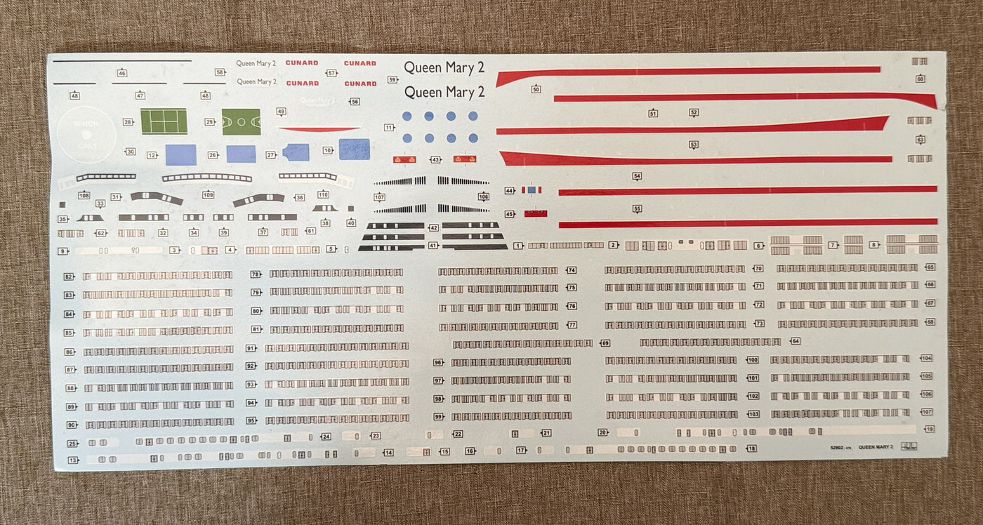 QM2: 2004 - Heller 1:600th scale model kit w/ 249 pieces & 103 decals