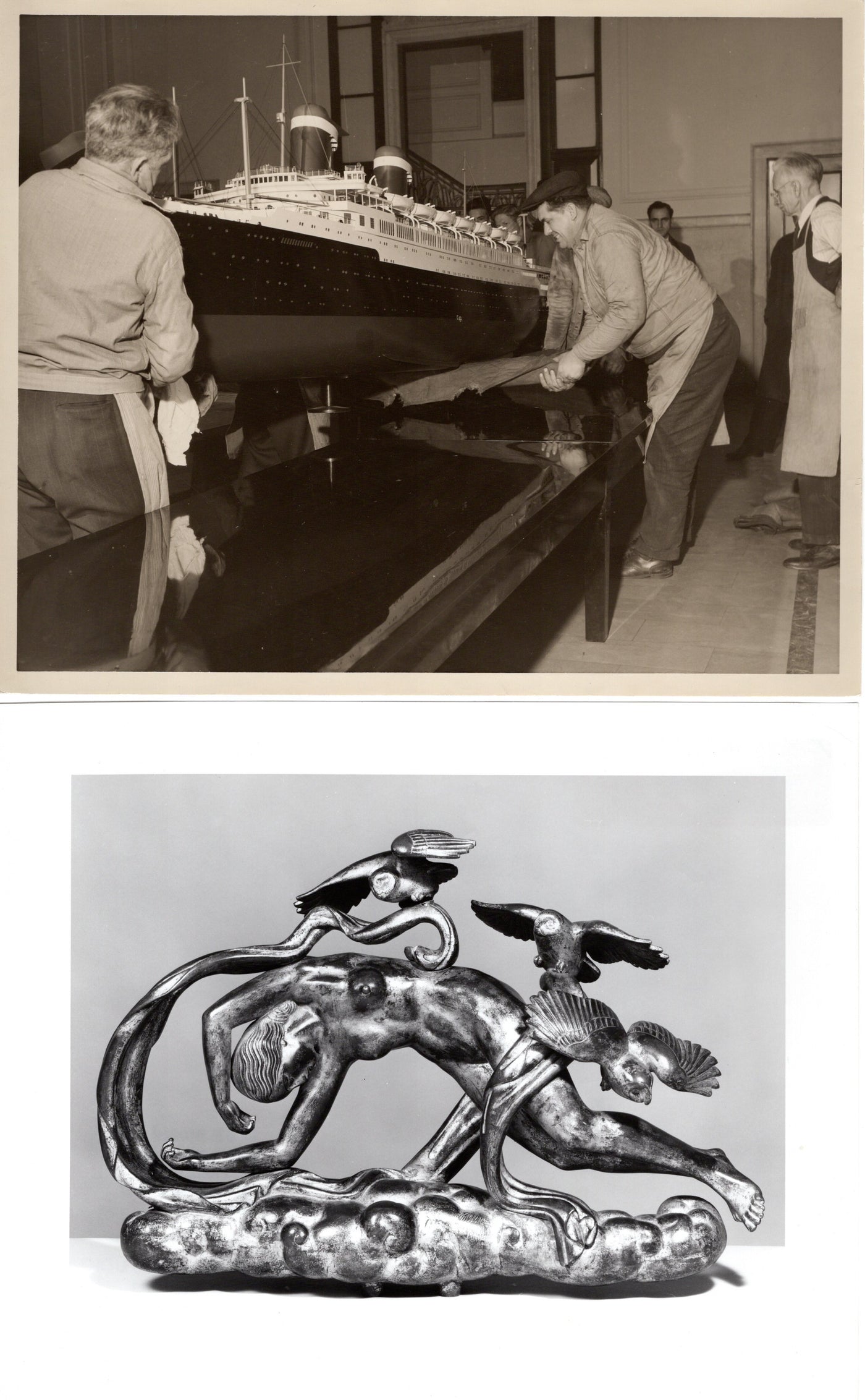 {"id":10285755367705,"title":"AMERICA: 1940 - 7 original \u0026 historic news photos 1946-1964","handle":"america-1940-7-original-historic-news-photos-1946-1964","description":"\u003cp\u003eUnited States Lines - From the Frank Braynard Collection, seven original news photos of the S.S. AMERICA in her early and late years.\u003c\/p\u003e\n\u003cp\u003eThe first (7\" by 9\") was taken on November 23, 1946, as the ship approached Southampton on her maiden peacetime transatlantic voyage. She is passing a beat-up old tub that upon closer examination is the QUEEN MARY undergoing her postwar rehab. The original wire copy is attached to the back.\u003c\/p\u003e\n\u003cp\u003ePhoto two (8\" by 10\") is of workmen carefully lifting the huge builder's model of the AMERICA. I am not sure if the photo was taken at Art Model Studios where the model was built or in USL headquarters where it was displayed.\u003c\/p\u003e\n\u003cp\u003eAn unusual image (8\" by 10\") shows Paul Manship's \"Evening\" sculpture commissioned for the AMERICA's main lounge. Manship also crafted \"Morning\" and \"Day\" for the ship. He created another sculpture you may have seen - the huge \"Prometheus\" stature at Rockefeller Center.\u003c\/p\u003e\n\u003cp\u003eTwo more photos (8\" by 10\") from the 1950s or 60s show the vessel arriving in New York and tied up at the pier with a SSUS funnel sticking up across the pier shed. \u003c\/p\u003e\n\u003cp\u003eImage six was taken in September 1963 after a labor strike forced USL to cancel all of AMERICA's remaining six voyages for the year. The engine room was shut down and the \"dead\" vessel was towed to Hoboken for lay-up. The ship returned to sailing early in 1964.\u003c\/p\u003e\n\u003cp\u003eA bittersweet image (8\" by 10\") from October 1964 shows Captain Frederick Fender (in sunglasses) arriving in New York on his final voyage aboard the ship. Frank Braynard was aboard for the occasion, having slept overnight on the pilot boat. The voyage was also the second-to-last for the AMERICA. At the conclusion of her next crossing on October 27, the ship discharged crew and passengers and then headed to Newport News for sale to Chandris Lines.\u003c\/p\u003e\n\u003cp\u003eExcellent condition.\u003c\/p\u003e","published_at":"2026-03-02T14:14:25-05:00","created_at":"2026-03-02T14:14:24-05:00","vendor":"FOB","type":"- Brochures and Paper","tags":["- Brochures and Paper","New Items","United States Lines"],"price":12500,"price_min":12500,"price_max":12500,"available":true,"price_varies":false,"compare_at_price":null,"compare_at_price_min":0,"compare_at_price_max":0,"compare_at_price_varies":false,"variants":[{"id":52051859636505,"title":"Default Title","option1":"Default Title","option2":null,"option3":null,"sku":"7707b","requires_shipping":true,"taxable":true,"featured_image":null,"available":true,"name":"AMERICA: 1940 - 7 original \u0026 historic news photos 1946-1964","public_title":null,"options":["Default Title"],"price":12500,"weight":170,"compare_at_price":null,"inventory_quantity":1,"inventory_management":"shopify","inventory_policy":"deny","barcode":"","requires_selling_plan":false,"selling_plan_allocations":[]}],"images":["\/\/nautiques.net\/cdn\/shop\/files\/7707b.jpg?v=1772478801","\/\/nautiques.net\/cdn\/shop\/files\/7707b-1.jpg?v=1772478802","\/\/nautiques.net\/cdn\/shop\/files\/7707b-2.jpg?v=1772478802","\/\/nautiques.net\/cdn\/shop\/files\/7707b-3.jpg?v=1772478801","\/\/nautiques.net\/cdn\/shop\/files\/7707b-4.jpg?v=1772478802","\/\/nautiques.net\/cdn\/shop\/files\/7707b-5.jpg?v=1772478802"],"featured_image":"\/\/nautiques.net\/cdn\/shop\/files\/7707b.jpg?v=1772478801","options":["Title"],"media":[{"alt":null,"id":43095438033177,"position":1,"preview_image":{"aspect_ratio":1.267,"height":1680,"width":2128,"src":"\/\/nautiques.net\/cdn\/shop\/files\/7707b.jpg?v=1772478801"},"aspect_ratio":1.267,"height":1680,"media_type":"image","src":"\/\/nautiques.net\/cdn\/shop\/files\/7707b.jpg?v=1772478801","width":2128},{"alt":null,"id":43095438065945,"position":2,"preview_image":{"aspect_ratio":1.267,"height":1680,"width":2128,"src":"\/\/nautiques.net\/cdn\/shop\/files\/7707b-1.jpg?v=1772478802"},"aspect_ratio":1.267,"height":1680,"media_type":"image","src":"\/\/nautiques.net\/cdn\/shop\/files\/7707b-1.jpg?v=1772478802","width":2128},{"alt":null,"id":43095438098713,"position":3,"preview_image":{"aspect_ratio":0.618,"height":3873,"width":2395,"src":"\/\/nautiques.net\/cdn\/shop\/files\/7707b-2.jpg?v=1772478802"},"aspect_ratio":0.618,"height":3873,"media_type":"image","src":"\/\/nautiques.net\/cdn\/shop\/files\/7707b-2.jpg?v=1772478802","width":2395},{"alt":null,"id":43095438131481,"position":4,"preview_image":{"aspect_ratio":0.618,"height":3873,"width":2395,"src":"\/\/nautiques.net\/cdn\/shop\/files\/7707b-3.jpg?v=1772478801"},"aspect_ratio":0.618,"height":3873,"media_type":"image","src":"\/\/nautiques.net\/cdn\/shop\/files\/7707b-3.jpg?v=1772478801","width":2395},{"alt":null,"id":43095438164249,"position":5,"preview_image":{"aspect_ratio":1.229,"height":1949,"width":2395,"src":"\/\/nautiques.net\/cdn\/shop\/files\/7707b-4.jpg?v=1772478802"},"aspect_ratio":1.229,"height":1949,"media_type":"image","src":"\/\/nautiques.net\/cdn\/shop\/files\/7707b-4.jpg?v=1772478802","width":2395},{"alt":null,"id":43095438197017,"position":6,"preview_image":{"aspect_ratio":0.801,"height":2395,"width":1919,"src":"\/\/nautiques.net\/cdn\/shop\/files\/7707b-5.jpg?v=1772478802"},"aspect_ratio":0.801,"height":2395,"media_type":"image","src":"\/\/nautiques.net\/cdn\/shop\/files\/7707b-5.jpg?v=1772478802","width":1919}],"requires_selling_plan":false,"selling_plan_groups":[],"content":"\u003cp\u003eUnited States Lines - From the Frank Braynard Collection, seven original news photos of the S.S. AMERICA in her early and late years.\u003c\/p\u003e\n\u003cp\u003eThe first (7\" by 9\") was taken on November 23, 1946, as the ship approached Southampton on her maiden peacetime transatlantic voyage. She is passing a bea