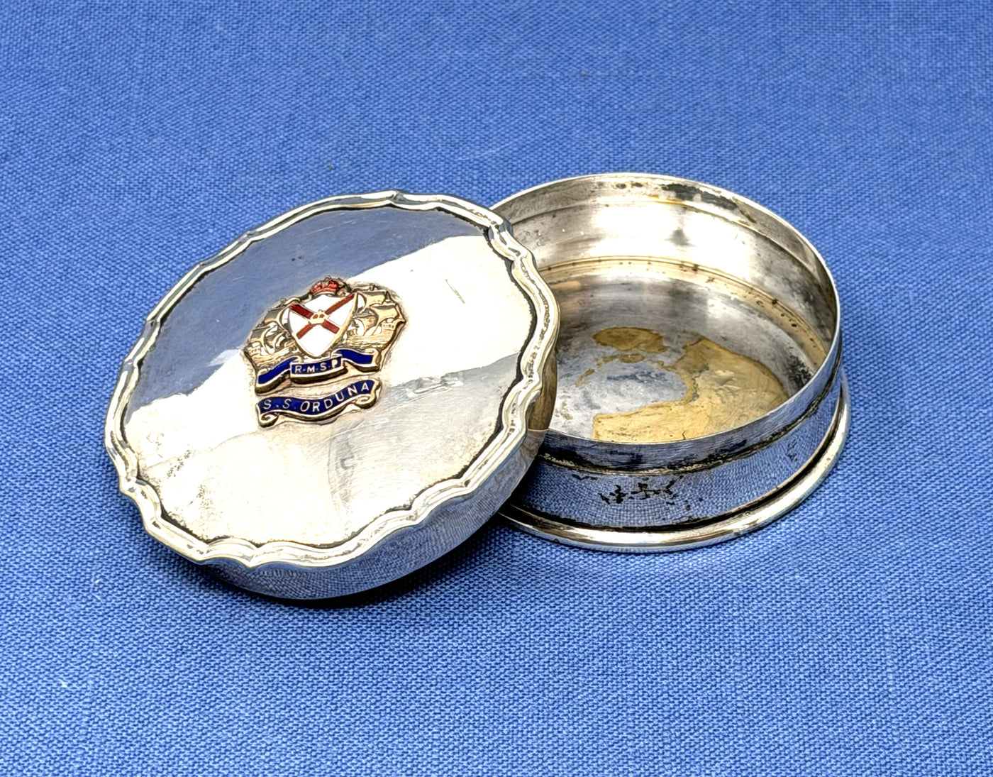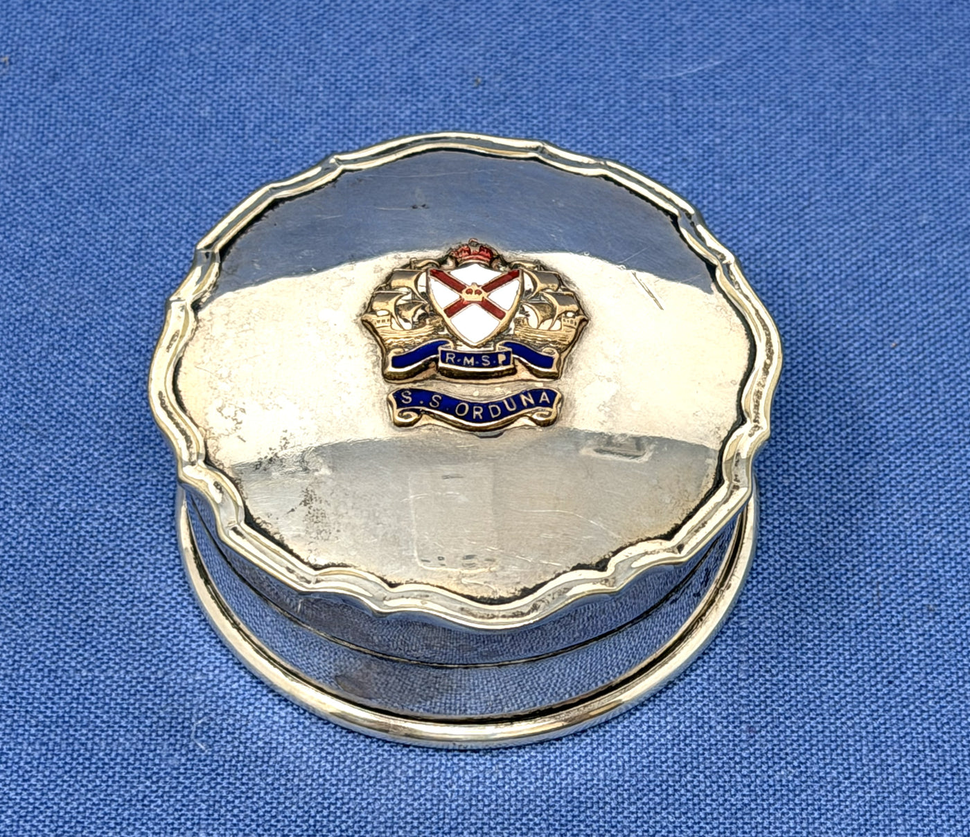 {"id":10214316048665,"title":"ORDUNA: 1914 - Silverplated, souvenir pill box","handle":"orduna-1914-silverplated-souvenir-pill-box","description":"\u003cp\u003eRoyal Mail Steam Packet Company - As sold onboard the ORDUNA, a souvenir, silverplated pill box.\u003c\/p\u003e\n\u003cp\u003eThe pill box measures 2.5\" in diameter and features an applied brass medallion containing the Royal Mail shield and the ship name in flowing banner. \u003c\/p\u003e\n\u003cp\u003eThis long-sailing vessel took her maiden voyage in 1914 for Pacific Steam Navigation's Liverpool-Valparaiso service. Soon after the outbreak of WW1 she was chartered to Cunard for the duration and her funnel was repainted in Cunard colors. \u003cbr\u003e \u003cbr\u003eThis souvenir comes probably comes from 1921 to 1926 when Royal Mail chartered the ORDUNA. She was operated in Hamburg-New York service, hence the initials of the Royal Mail Steam Packet Company above the ship name. Pacific Steam took the ORDUNA back in 1927 and sailed her until WW2. She served troopship duties and wasn't broken up until 1951. \u003cbr\u003e \u003cbr\u003eExcellent condition.\u003c\/p\u003e","published_at":"2025-12-09T10:52:05-05:00","created_at":"2025-12-09T10:52:02-05:00","vendor":"N","type":"- Souvenirs","tags":["- Souvenirs","A to Z: 100s of Ships","holding","Royal Mail Line"],"price":6500,"price_min":6500,"price_max":6500,"available":true,"price_varies":false,"compare_at_price":null,"compare_at_price_min":0,"compare_at_price_max":0,"compare_at_price_varies":false,"variants":[{"id":51749387272473,"title":"Default Title","option1":"Default Title","option2":null,"option3":null,"sku":"3066a","requires_shipping":true,"taxable":true,"featured_image":null,"available":true,"name":"ORDUNA: 1914 - Silverplated, souvenir pill box","public_title":null,"options":["Default Title"],"price":6500,"weight":227,"compare_at_price":null,"inventory_quantity":1,"inventory_management":"shopify","inventory_policy":"deny","barcode":"","requires_selling_plan":false,"selling_plan_allocations":[]}],"images":["\/\/nautiques.net\/cdn\/shop\/files\/3066a.jpg?v=1765295460","\/\/nautiques.net\/cdn\/shop\/files\/3066a-1.jpg?v=1765295460","\/\/nautiques.net\/cdn\/shop\/files\/3066a-2.jpg?v=1765295460","\/\/nautiques.net\/cdn\/shop\/files\/3066a-3.jpg?v=1765295460","\/\/nautiques.net\/cdn\/shop\/files\/3066a-4.jpg?v=1765295460","\/\/nautiques.net\/cdn\/shop\/files\/3066a-5.jpg?v=1765295460"],"featured_image":"\/\/nautiques.net\/cdn\/shop\/files\/3066a.jpg?v=1765295460","options":["Title"],"media":[{"alt":null,"id":42462496817433,"position":1,"preview_image":{"aspect_ratio":1.158,"height":2898,"width":3355,"src":"\/\/nautiques.net\/cdn\/shop\/files\/3066a.jpg?v=1765295460"},"aspect_ratio":1.158,"height":2898,"media_type":"image","src":"\/\/nautiques.net\/cdn\/shop\/files\/3066a.jpg?v=1765295460","width":3355},{"alt":null,"id":42462496850201,"position":2,"preview_image":{"aspect_ratio":0.999,"height":2383,"width":2380,"src":"\/\/nautiques.net\/cdn\/shop\/files\/3066a-1.jpg?v=1765295460"},"aspect_ratio":0.999,"height":2383,"media_type":"image","src":"\/\/nautiques.net\/cdn\/shop\/files\/3066a-1.jpg?v=1765295460","width":2380},{"alt":null,"id":42462496882969,"position":3,"preview_image":{"aspect_ratio":1.278,"height":2872,"width":3671,"src":"\/\/nautiques.net\/cdn\/shop\/files\/3066a-2.jpg?v=1765295460"},"aspect_ratio":1.278,"height":2872,"media_type":"image","src":"\/\/nautiques.net\/cdn\/shop\/files\/3066a-2.jpg?v=1765295460","width":3671},{"alt":null,"id":42462496915737,"position":4,"preview_image":{"aspect_ratio":1.415,"height":2655,"width":3757,"src":"\/\/nautiques.net\/cdn\/shop\/files\/3066a-3.jpg?v=1765295460"},"aspect_ratio":1.415,"height":2655,"media_type":"image","src":"\/\/nautiques.net\/cdn\/shop\/files\/3066a-3.jpg?v=1765295460","width":3757},{"alt":null,"id":42462496948505,"position":5,"preview_image":{"aspect_ratio":1.083,"height":2274,"width":2462,"src":"\/\/nautiques.net\/cdn\/shop\/files\/3066a-4.jpg?v=1765295460"},"aspect_ratio":1.083,"height":2274,"media_type":"image","src":"\/\/nautiques.net\/cdn\/shop\/files\/3066a-4.jpg?v=1765295460","width":2462},{"alt":null,"id":42462496981273,"position":6,"preview_image":{"aspect_ratio":1.079,"height":3024,"width":3262,"src":"\/\/nautiques.net\/cdn\/shop\/files\/3066a-5.jpg?v=1765295460"},"aspect_ratio":1.079,"height":3024,"media_type":"image","src":"\/\/nautiques.net\/cdn\/shop\/files\/3066a-5.jpg?v=1765295460","width":3262}],"requires_selling_plan":false,"selling_plan_groups":[],"content":"\u003cp\u003eRoyal Mail Steam Packet Company - As sold onboard the ORDUNA, a souvenir, silverplated pill box.\u003c\/p\u003e\n\u003cp\u003eThe pill box measures 2.5\" in diameter and features an applied brass medallion containing the Royal Mail shield and the ship name in flowing banner. \u003c\/p\u003e\n\u003cp\u003eThis long-sailing vessel took her maiden voyage in 1914 for Pacific Steam Navigation's Liverpool-Valparaiso service. Soon after the outbreak of WW1 she was chartered to Cunard for the duration and her funnel was repainted in Cunard colors. \u003cbr\u003e \u003cbr\u003eThis souvenir comes probably comes from 1921 to 1926 when Royal Mail chartered the ORDUNA. She was operated in Hamburg-New York service, hence the initials of the Royal Mail Steam Packet Company above the ship name. Pacific Steam took the ORDUNA back in 1927 and sailed her until WW2. She served troopship duties and wasn't broken up until 1951. \u003cbr\u003e \u003cbr\u003eExcellent condition.\u003c\/p\u003e"}