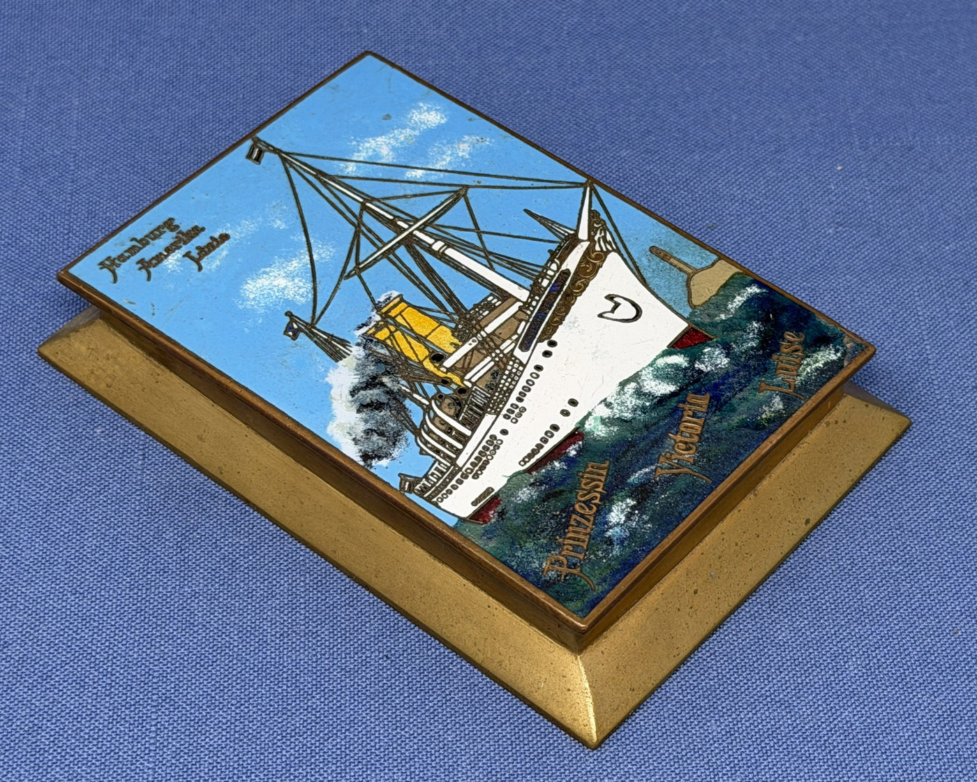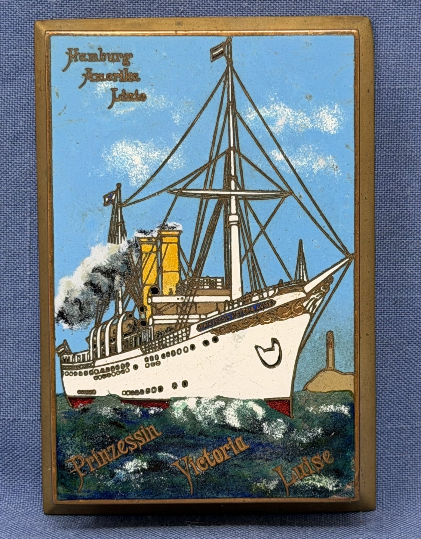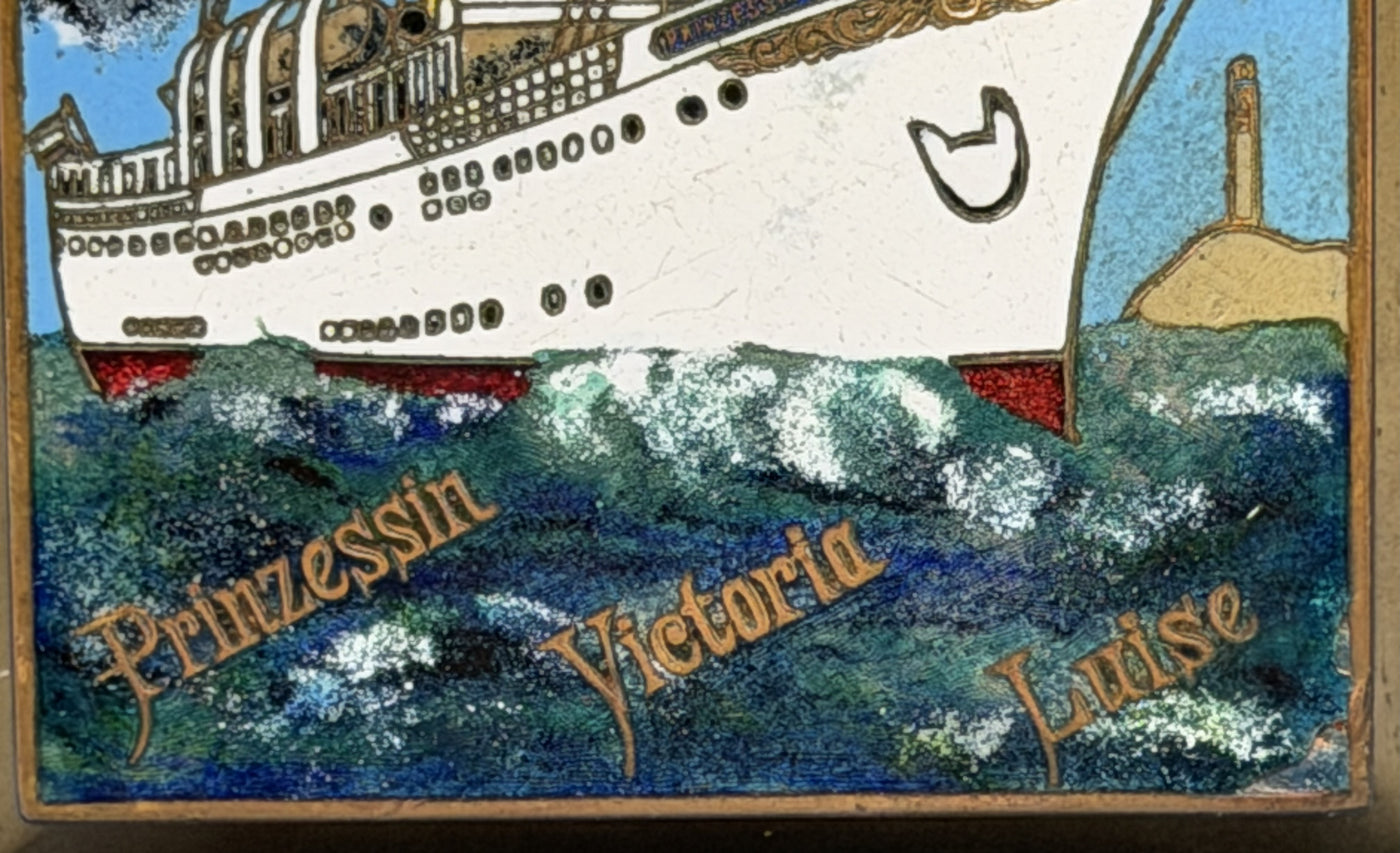 {"id":10175795986713,"title":"PRINZESSIN VICTORIA LUISE: 1901 - Cloisonne portrait paperweight","handle":"prinzessin-victoria-luise-1901-cloisonne-portrait-paperweight","description":"\u003cp\u003eHamburg American Line - A cloisonné paperweight from the early 1900s with a color portrait of the PRINZESSIN VICTORIA LUISE of 1901, claimed by HAPAG as the world's first purpose-built cruise ship.\u003c\/p\u003e\n\u003cp\u003eThe 3.25\" by 4.75\" paperweight features angled brass sides. The portrait is nicely detailed. The line name is on top and the ship name along the bottom. \u003c\/p\u003e\n\u003cp\u003eThe PRINZESSIN VICTORIA LUISE catered to a rich clientele that sailed the world. Sadly, she lasted just five years. In 1906 the captain mistook lighthouses off Jamaica and sailed onto a reef. He sent a boat ashore to get help and then promptly shot himself. All passengers were saved the next day but the ship was declared a total loss.\u003c\/p\u003e\n\u003cp\u003eExcellent condition.\u003c\/p\u003e","published_at":"2025-10-27T17:59:18-04:00","created_at":"2025-10-27T17:59:16-04:00","vendor":"N","type":"- Souvenirs","tags":["- Souvenirs","Hamburg American","holding","New Items"],"price":9500,"price_min":9500,"price_max":9500,"available":false,"price_varies":false,"compare_at_price":null,"compare_at_price_min":0,"compare_at_price_max":0,"compare_at_price_varies":false,"variants":[{"id":51575381623065,"title":"Default Title","option1":"Default Title","option2":null,"option3":null,"sku":"11651a","requires_shipping":true,"taxable":true,"featured_image":null,"available":false,"name":"PRINZESSIN VICTORIA LUISE: 1901 - Cloisonne portrait paperweight","public_title":null,"options":["Default Title"],"price":9500,"weight":454,"compare_at_price":null,"inventory_quantity":0,"inventory_management":"shopify","inventory_policy":"deny","barcode":"","requires_selling_plan":false,"selling_plan_allocations":[]}],"images":["\/\/nautiques.net\/cdn\/shop\/files\/11651a.jpg?v=1761602269","\/\/nautiques.net\/cdn\/shop\/files\/11651a-1.jpg?v=1761602269","\/\/nautiques.net\/cdn\/shop\/files\/11651a-2.jpg?v=1761602269","\/\/nautiques.net\/cdn\/shop\/files\/11651a-3.jpg?v=1761602269"],"featured_image":"\/\/nautiques.net\/cdn\/shop\/files\/11651a.jpg?v=1761602269","options":["Title"],"media":[{"alt":null,"id":42138861764889,"position":1,"preview_image":{"aspect_ratio":0.781,"height":2430,"width":1899,"src":"\/\/nautiques.net\/cdn\/shop\/files\/11651a.jpg?v=1761602269"},"aspect_ratio":0.781,"height":2430,"media_type":"image","src":"\/\/nautiques.net\/cdn\/shop\/files\/11651a.jpg?v=1761602269","width":1899},{"alt":null,"id":42138861797657,"position":2,"preview_image":{"aspect_ratio":1.64,"height":2458,"width":4032,"src":"\/\/nautiques.net\/cdn\/shop\/files\/11651a-1.jpg?v=1761602269"},"aspect_ratio":1.64,"height":2458,"media_type":"image","src":"\/\/nautiques.net\/cdn\/shop\/files\/11651a-1.jpg?v=1761602269","width":4032},{"alt":null,"id":42138861830425,"position":3,"preview_image":{"aspect_ratio":0.737,"height":2726,"width":2010,"src":"\/\/nautiques.net\/cdn\/shop\/files\/11651a-2.jpg?v=1761602269"},"aspect_ratio":0.737,"height":2726,"media_type":"image","src":"\/\/nautiques.net\/cdn\/shop\/files\/11651a-2.jpg?v=1761602269","width":2010},{"alt":null,"id":42138861863193,"position":4,"preview_image":{"aspect_ratio":1.25,"height":2672,"width":3339,"src":"\/\/nautiques.net\/cdn\/shop\/files\/11651a-3.jpg?v=1761602269"},"aspect_ratio":1.25,"height":2672,"media_type":"image","src":"\/\/nautiques.net\/cdn\/shop\/files\/11651a-3.jpg?v=1761602269","width":3339}],"requires_selling_plan":false,"selling_plan_groups":[],"content":"\u003cp\u003eHamburg American Line - A cloisonné paperweight from the early 1900s with a color portrait of the PRINZESSIN VICTORIA LUISE of 1901, claimed by HAPAG as the world's first purpose-built cruise ship.\u003c\/p\u003e\n\u003cp\u003eThe 3.25\" by 4.75\" paperweight features angled brass sides. The portrait is nicely detailed. The line name is on top and the ship name along the bottom. \u003c\/p\u003e\n\u003cp\u003eThe PRINZESSIN VICTORIA LUISE catered to a rich clientele that sailed the world. Sadly, she lasted just five years. In 1906 the captain mistook lighthouses off Jamaica and sailed onto a reef. He sent a boat ashore to get help and then promptly shot himself. All passengers were saved the next day but the ship was declared a total loss.\u003c\/p\u003e\n\u003cp\u003eExcellent condition.\u003c\/p\u003e"}