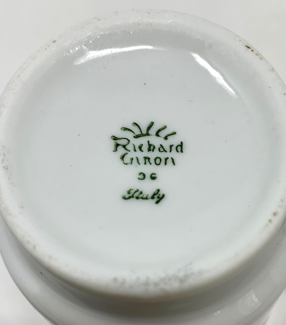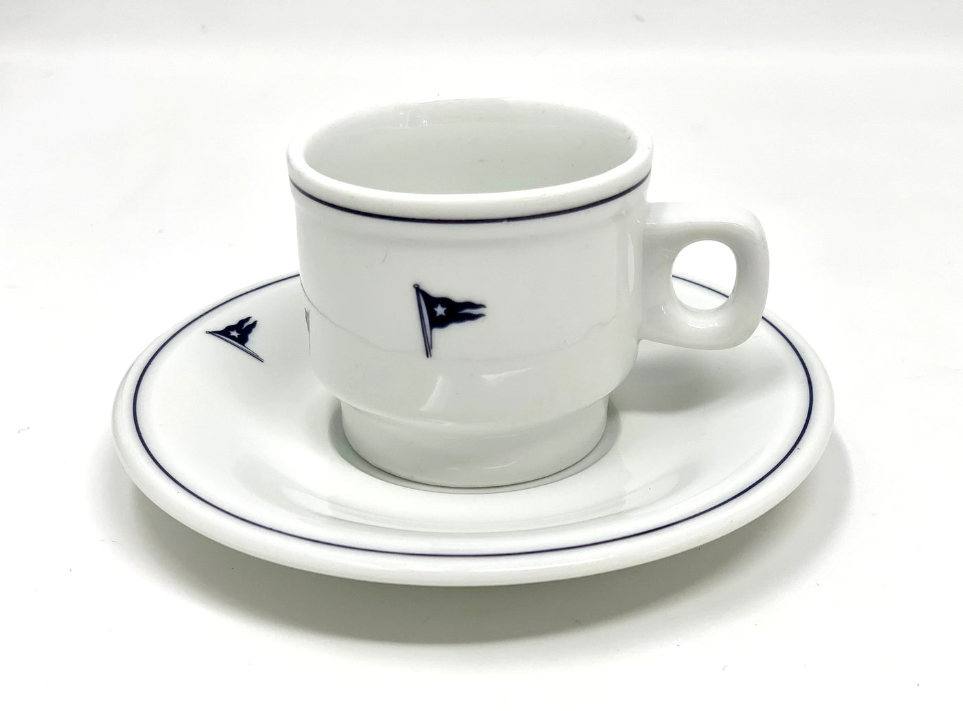 Both the 2.5" diameter cup and 5" diameter saucer feature the Flotta Lauro star burgee.  Both pieces are also bottom-marked Richard Ginori china.